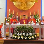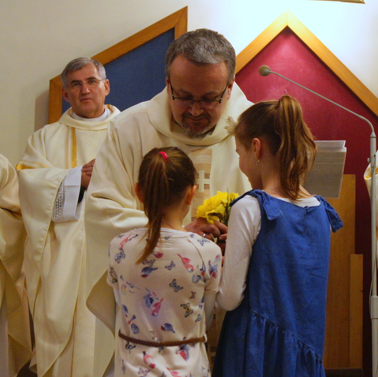 Wieczorną koncelebrowaną Eucharystię sprawowali kapłani posługujący w naszej wspólnocie, zaś przewodniczył nasz rodak, dominikanin o. Grzegorz Chrzanowski, który w tym dniu będąc solenizantem obchodził jednocześnie srebrny jubileusz kapłaństwa.
