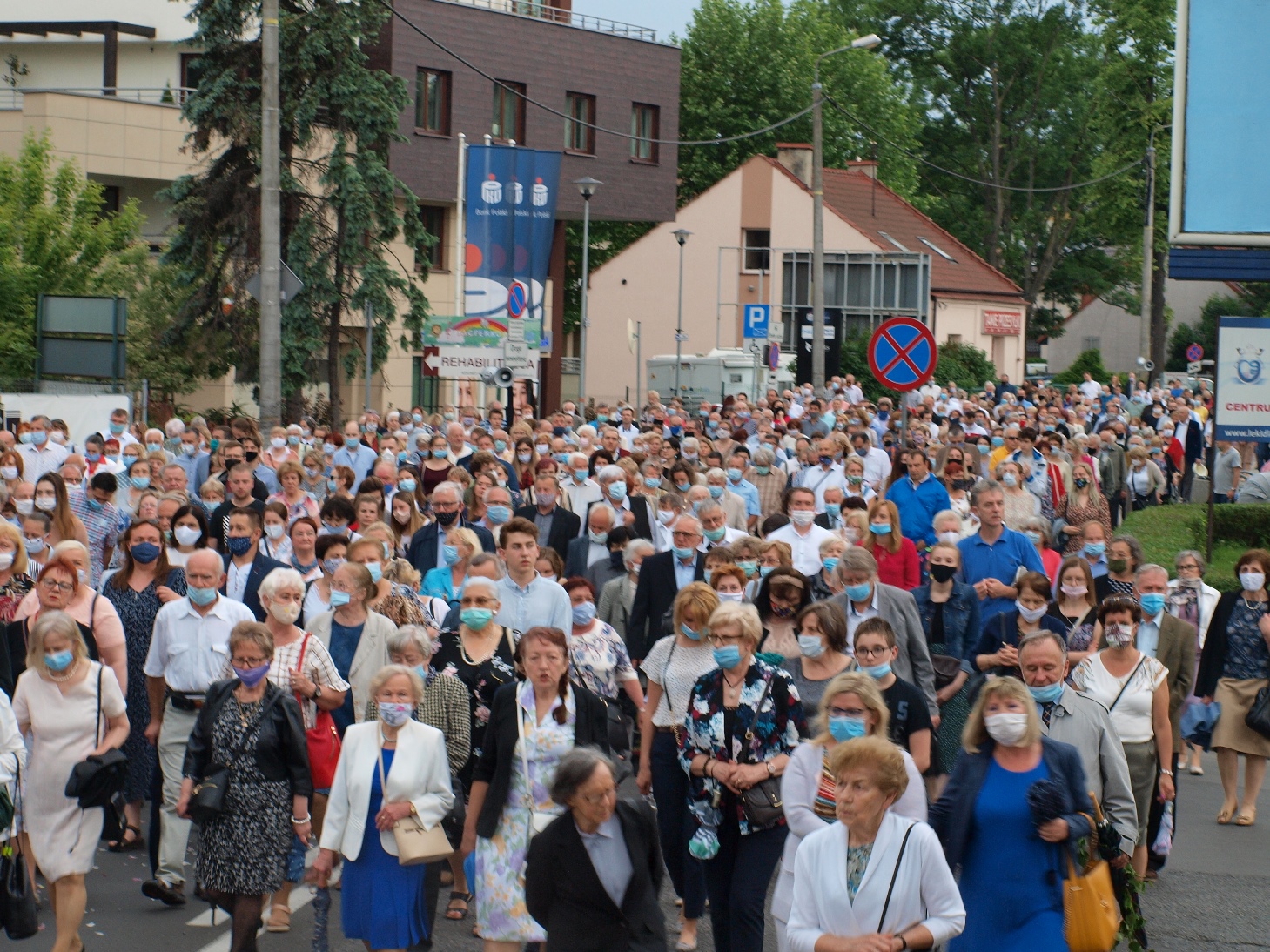 Za uczestnictwo w procesji, licznie przybyłym wiernym z obu parafii, dzieciom, wspólnotom i grupom formacyjnym, policji i straży miejskiej zabezpieczającej procesję oraz kościelnej służbie porządkowej, podziękował ks. proboszcz Jerzy Serwin. Parafianom obu parafii nie przeszkodził trwający od połowy drogi deszcz ani burza. Była to procesja w niezwykłym czasie, z parasolami i maseczkami na twarzy. I w tym nowym doświadczeniu obecności Pana, wielu wzięło udział, gdyż On pragnie być z nami w każdej chwili, nawet tak dziwnej jak pandemia koronawirusa.