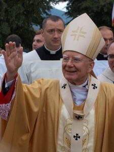 Koncelebrowanej przez kilkudziesięciu kapłanów Mszy św., wśród których był ks. bp. Jan Zając, a także nasz proboszcz ks. Jerzy Serwin, przewodniczył ks. abp Marek Jędraszewski. Na wstępie Najświętszej Ofiary, celebransów, służbę liturgiczną, przedstawicieli władz rządowych i samorządowych: Wojewodę Małopolskiego p. Łukasza Kmitę, Ministra Rodziny, Pracy i Polityki Społecznej p. Marlenę Maląg, Małopolskiego Kuratora Oświaty p. Barbarę Nowak oraz licznie, mimo brzydkiej pogody, przybyłe do sanktuarium w Kalwarii Zebrzydowskiej pielgrzymujące rodziny, przywitał o. Gracjan Adam Kubica OFM – kustosz sanktuarium.