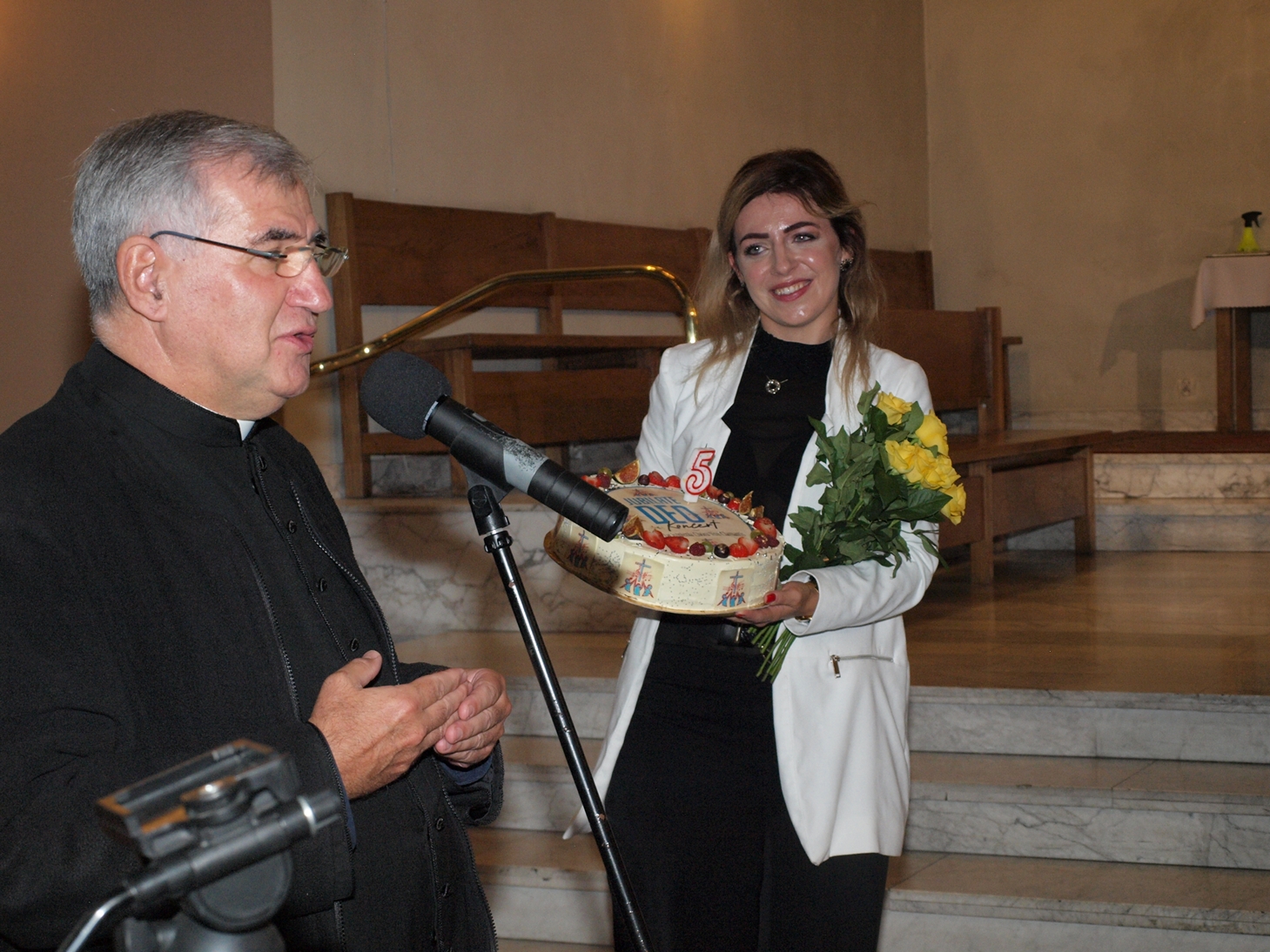 Chcąc uczcić 5-letnią rocznicę swego powstania, w dniu 25 września odbył się w naszej świątyni koncert Jubilate Deo. Chór uświetnił swoim śpiewem Mszę św. o godz. 13.30, a bezpośrednio po niej miał miejsce występ, który rozpoczął się hymnem Gaude Mater Polonia. Śpiewowi towarzyszyły organy, na których grał p. Jakub Kamiński. Następnie dyrygent, p. Dominika Cieślik-Lauf, przedstawiła historię powstania chóru oraz zapowiedziała i omówiła treść koncertu.