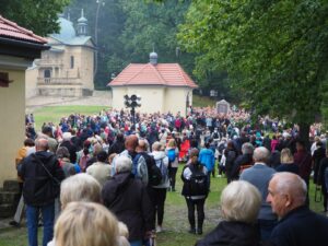 Podczas tego nabożeństwa, tradycyjnie, mężczyźni nieśli wielki krzyż, a kobiety wizerunek Matki Bożej Kalwaryjskiej.