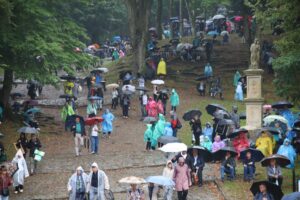 W tym roku Droga Krzyżowa odbywała się w bardzo niesprzyjających warunkach pogodowych. Padał deszcz, miejscami bardzo rzęsisty, tak, więc dróżki były bardzo śliskie. W związku z niesprzyjającą aurą organizatorzy podjęli decyzję, aby Msza św. odprawiona została w bazylice. Ale wszystkich pielgrzymów bazylika oraz przyległe krużganki nie były w stanie pomieścić, wielu wiec musiało zostać na zewnątrz, na deszczu.